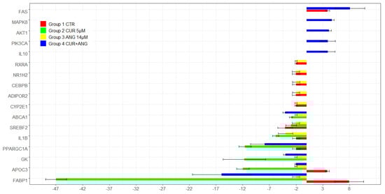 2.4. Effect of Curcumin–Andrographolide Association on Insulin and Adipokine Signaling, Metabolic Pathways, Inflammatory Response, and Apoptosis