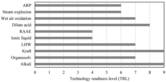 Technology readiness level of the selected lignocellulosic pretreatments.