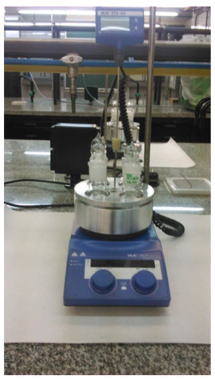 The experiments were carried out in 50 mL glass reactors operating in a batch mode. The round-bottomed flasks were placed in an aluminum gasket inserted in a heating plate with magnetic agitation and temperature PID control, as shown in