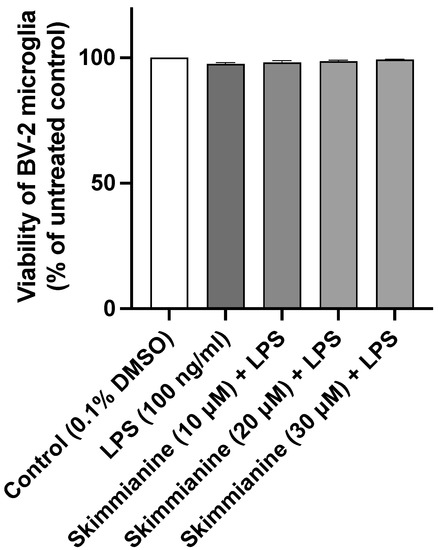 2.1. Skimmianine Did Not Affect the Viability of BV-2 Microglia