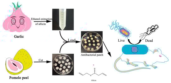 The antibacterial patch preparation processes by using pomelo peel as the scaffold and the extracted allicin as the antibacterial agent.
