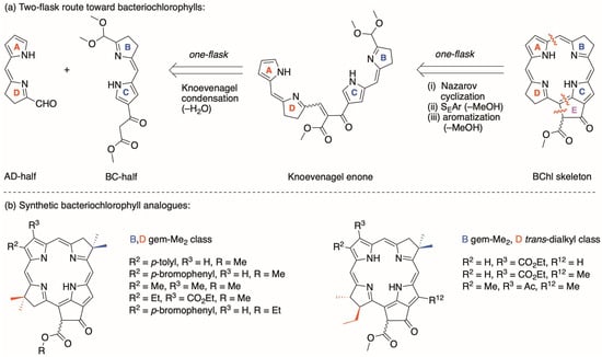 - Chau Nguyen, K.; Wang, P.; Sommer, R.D.; Lindsey, J.S. Asymmetric Synthesis of a Bacteriochlorophyll Model Compound Containing trans-Dialkyl Substituents in Ring D. J. Org. Chem. 2020, 85, 6605–6619. [Google Scholar] [CrossRef]