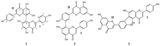 - Kang, S.S.; Lee, J.Y.; Choi, Y.K.; Song, S.S.; Kim, J.S.; Jeon, S.J.; Han, Y.N.; Son, K.H.; Han, B.H. Neuroprotective effects of naturally occurring biflavonoids. Bioorg. Med. Chem. Lett. 2005, 15, 3588–3591. [Google Scholar] [CrossRef]