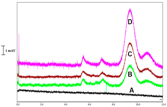 Figure 9A–D show representative chromatograms for the separation of CoQ10 in (A) the blank sample and (B–D) the matrix-matched standards with different concentrations of CoQ10, demonstrating that CoQ10 could be sensitively determined in the samples.