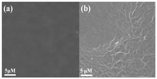 SEM images of (a) bare GCE and (b) p-Gly/rGO/GCE.