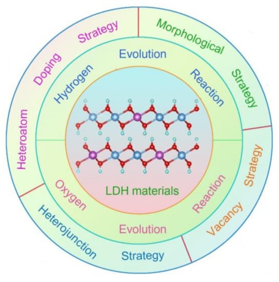 Figure 1. Modification strategies of Ni (Co, Fe)-based LDH materials as water splitting electrocatalysts.