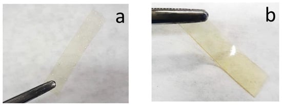 FTIR analyses of the composite films were carried out using a Frontier 98737 model spectrometer (Perkin Elmer, Waltham, MA, USA) at room temperature that was equipped with a Universal Attenuated Total Reflectance (ATR) cell device in the 4000–400 cm−1 range. All spectra were registered by averaging 60 scans with a resolution of 4 cm−1 in transmission mode.