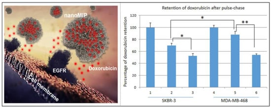 - Canfarotta, F.; Lezina, L.; Guerreiro, A.; Czulak, J.; Petukhov, A.; Daks, A.; Smolinska-Kempisty, K.; Poma, A.; Piletsky, S.; Barlev, N.A. Specific Drug Delivery to Cancer Cells with Double-Imprinted Nanoparticles against Epidermal Growth Factor Receptor. Nano Lett. 2018, 18, 4641–4646. [Google Scholar] [CrossRef] [PubMed]