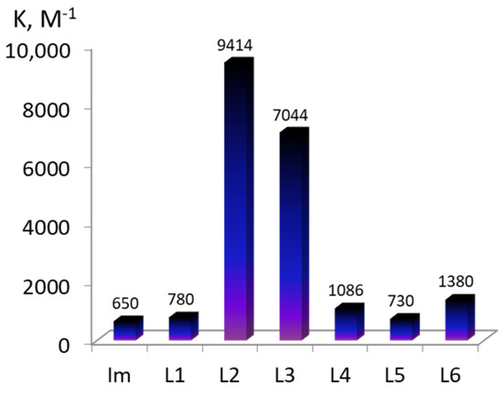 | L3 | 7.54 (s, 1H, Im) 6.80 (s, 1H, Im) 6.25 (br.s. 2H, NH2) 4.98 (br. s, 1H, NH) 2.97 (t, 2H, Im-CH2-CH2-) 2.75 (t, 2H, Im-CH2-CH2-) | 3.58 (s, 1H, Im) 5.73 (s, 1H, Im) 7,12 (br.s, 2H, NH2) 4,90 (br. s, 1H, NH) 2.94 (t, 2H, Im-CH2-CH2-) 2.70 (t, 2H, Im-CH2-CH2-) |