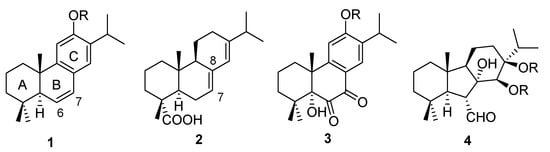 Abietane-type compounds (1–2) and their synthetic derivatives (3–4).