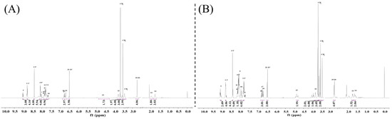 The 1H NMR spectra of 1 (A) and 2 (B).