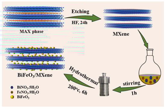 Preparation of BiFeO3 nanoparticles on layered MXene.