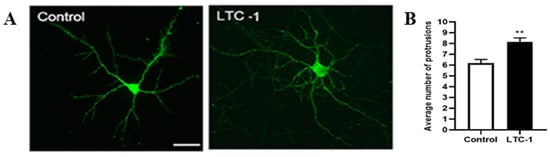 2.7. Effect of LTC-1 on the Length, Number and Density of Dendritic Dpines in Hippocampal Neurons