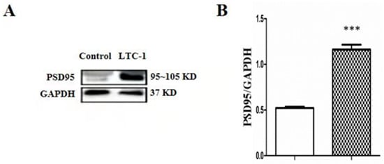 2.8. Effect of LTC-1 on the Expression of the Synapse Protein PSD-95