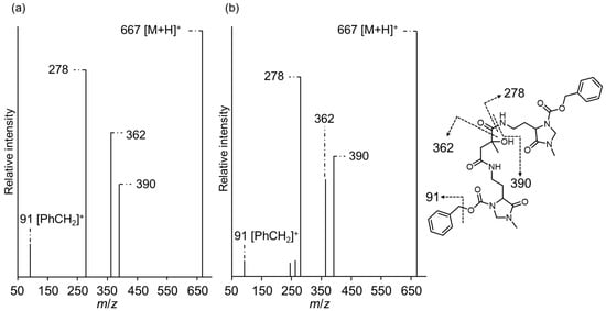 R- and S-CMA were purchased from Sigma (St. Louis, CA, USA) and Toronto Research Chemicals (Toronto, ON, Canada), respectively. Formic acid (HPLC-grade) was obtained from the Fujifilm Wako Pure Chemical Corporation (Osaka, Japan). Triphenylphosphine (TPP) and 2,2′-dipyridyl disulfide (DPDS) were obtained from Tokyo Chemical Industry Co., Ltd. (Tokyo, Japan). CH3CN (LCMS-grade) was obtained from Kanto Kagaku Co., Ltd. (Tokyo, Japan). Phosphate-buffered saline (PBS) was obtained from the Nissui Pharmaceutical Co., Ltd. (Tokyo, Japan). H2O was purified using a Milli-Q Labo system (Nihon Millipore Co. Ltd., Tokyo, Japan). R-CIM-C2-NH2 was synthesized following our previously reported method [7].