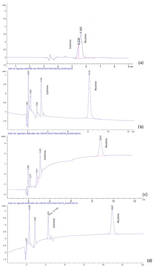 Therefore, the presented chromatographic method can be used as alternative for monitoring studies or the pharmacokinetic applications necessary for the evaluation of tobacco smoke exposure.