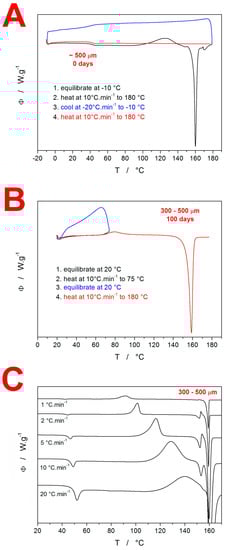 - Romanová, J.; Svoboda, R.; Obadalová, I.; Beneš, L.; Pekárek, T.; Krejčík, L.; Komersová, A. Amorphous Enzalutamide—non-isothermal recrystallization kinetics and thermal stability. Thermochim. Acta 2018, 655, 134–141. [Google Scholar] [CrossRef]