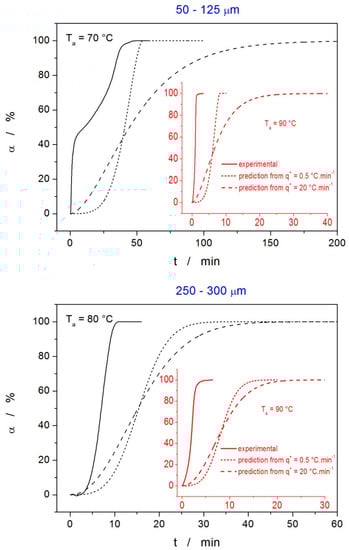 - Avrami, M. Kinetics of phase change. II–transformation-time relations for random distribution of nuclei. J. Chem. Phys. 1940, 7, 212–224. [Google Scholar] [CrossRef]