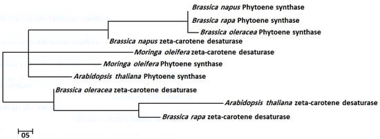 Compared to Brassica napus, Brassica rapa, Brassica oleracea and Bixa orellana, molecular studies of M. oleifera are not well reported. Computational analysis such as phylogenetic analysis, and multiple sequence analysis, showed that the bioactive beta carotene genes zeta-carotene desaturase (ZDS) and phytoene synthase (PSY) belong to similar ancestors in terms of evolutionary lineage. Meanwhile, multiple sequence alignment and Pfam database analyses revealed that the ZDS and PSY bioactive genes have common domains and protein families with Arabidopsis thaliana, Brassica napus, Brassica rapa, Brassica oleracea and Bixa orellana. In some studies, the association of a few antioxidant-linked enzymes in the vegetative parts of M. oleifera, such as catalase, Lascorbate peroxidase, peroxiredoxin and peroxidase, have been confirmed through both in vivo and in vitro analyses []. Computational analysis based on reference genes from A. thalliana showed the presence of ZDS and PSY genes in the Brassica family, which has several phytonutrients capable of inhibiting particular enzymes that usually stimulate carcinogens and that also nurture other enzymes which assist in the disassembly of active carcinogens []. Moreover, carotenoids are also essential compounds in human diets, primarily as a precursor of vitamin A.