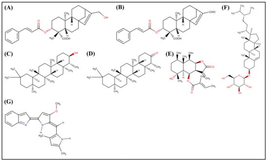 - Adewole, K.E.; Ishola, A.A. Phytosterols and triterpenes from Morinda lucida Benth (Rubiaceae) as potential inhibitors of anti-apoptotic BCL-XL, BCL-2, and MCL-1: An in-silico study. J. Recept. Signal Transduct. 2019, 39, 87–97. [Google Scholar] [CrossRef]