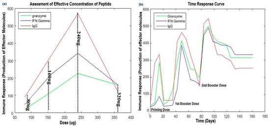 Assessment of effective concentration of potential epitopes (a) and time response curve (b).