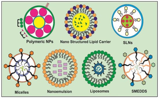 Lipid-based formulations, such as nanostructured lipid carriers (NLCs), are regarded to be superior to conventional lipid-based nanocarriers, which have a rigid matrix at room temperature. NLCs are created by combining liquid lipid and solid lipid in such a way that prevents the oil molecules from contributing to the crystalline structure [143]. In order to overcome the drawbacks of SLNs, NLCs have been developed which demonstrated better loading capacity for active chemicals as compared to SLN. Moreover, there is less possibility of drug discharge from NLCs during storage [144].