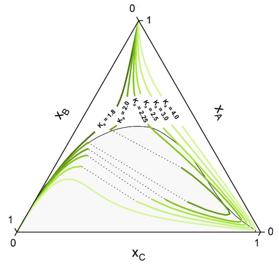 - Toikka, M.A.; Toikka, A.M. Peculiarities of phase diagrams of reactive liquid–liquid systems. Pure Appl. Chem. 2012, 85, 277–288. [Google Scholar] [CrossRef]