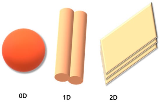 Owing to the specificity of the structure of carbon nanomaterials, there are several unique effects, including small-size effects, quantum effects, and surface and interfacial effects. Carbon nanomaterials can be classified into three classes based on their structure, which is well described in Figure 2. Materials that contain all the dimensions in nanoscales are 0D materials (e.g., fullerenes and carbon quantum dots); 1D materials have dimensions in the single Cartesian coordinate system, such that one of the three dimensions is >100 nm, whereas the other two are <100 nm. Two of the three dimensions are >100 nm for 2D materials; the electrons can move freely in planar motion, and only one dimension is <100 nm.