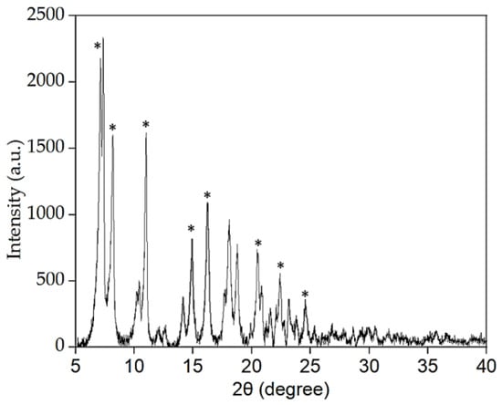 XRD pattern of Co-MTPhPyP. * Signals similar toy Sengupta et al. [24].