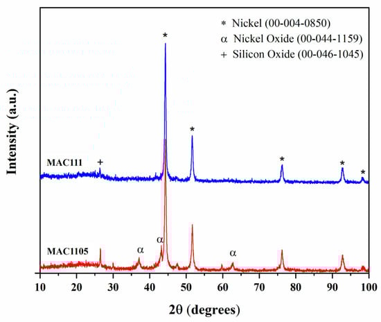 Nanostructured Ni particles with average crystallite sizes of 18.96 and 25.34 nm for MAC1105 and MAC111, respectively, were obtained (calculated using Scherrer’s equation).