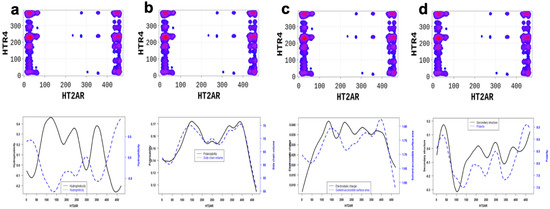 5-HT2AR/5-HTR4R dimerization is highly driven by (a) the hydrophilicity, (b) the polarizability and side chain, (c) the electrostatic charge and polarity, and (d) the secondary structure similarity and solvent accessibility properties of the 5-HT2AR amino-acids located at the interfaces. These properties are significantly different at the predicted binding interfaces than non-binding peptides.