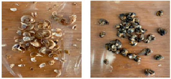 After 60 days, the shells and body parts of the snails were separated and dried under natural conditions at room temperature (22–25 °C) (Figure 9) for 10–14 days. Spectra of the dried samples were recorded at room temperature on an Electron Paramagnetic Resonance Spectroscopy (EMX-BRUKER (Rheinstetten, Germany)).