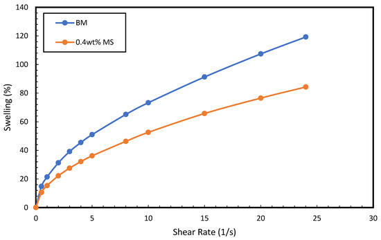 Swelling behavior of sodium bentonite in (i) water, (ii) 0.4 wt% MS.