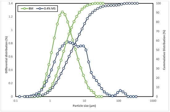 (a) Particle size distribution, and (b) Cumulative density distribution of conventional WBM and MS–WBM.