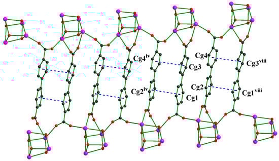 View of the π⋯π interactions in 1 (Blue dash lines represent π⋯π interactions, symmetry codes see in the Table S2 from Supplementary Materials).
