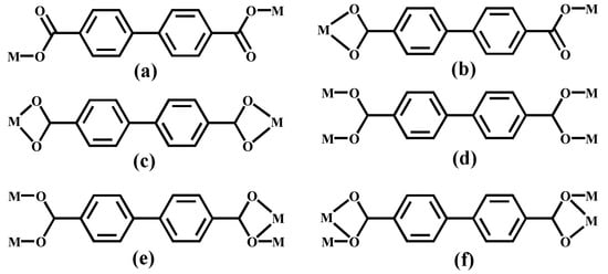 (a–f) The familiar 6 coordination modes of 4,4′-biphenyldicarboxylate ligand.