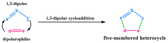 - Breugst, M.; Reissig, H. The Huisgen Reaction: Milestones of the 1,3-Dipolar Cycloaddition. Angew. Chem. Int. Ed. Engl. 2020, 59, 12293–12307. [Google Scholar] [CrossRef]