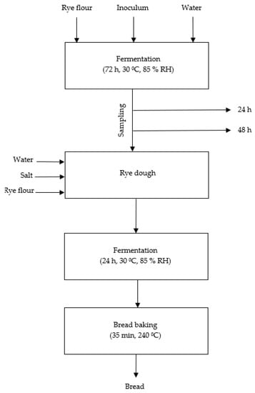 - Weckx, S.; Van der Meulen, R.; Maes, D.; Scheirlinck, I.; Huys, G.; Vandamme, P.; De Vuyst, L. Lactic acid bacteria community dynamics and metabolite production of rye sourdough fermentations share characteristics of wheat and spelt sourdough fermentations. Food Microbiol. 2010, 27, 1000–1008. [Google Scholar] [CrossRef]