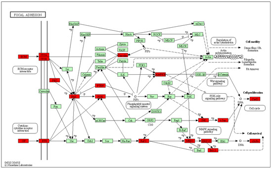 - Zhou, Y.; Shu, C.; Huang, Y. Fibronectin promotes cervical cancer tumorigenesis through activating FAK signaling pathway. J. Cell Biochem. 2019, 120, 10988–10997. [Google Scholar] [CrossRef] [PubMed]