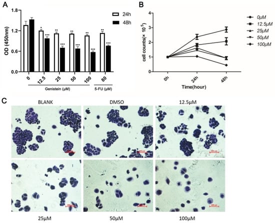 - Wang, S.Y.; Yang, K.W.; Hsu, Y.T.; Chang, C.L.; Yang, Y.C. The differential inhibitory effects of genistein on the growth of cervical cancer cells in vitro. Neoplasma 2001, 48, 227–233. [Google Scholar] [PubMed]