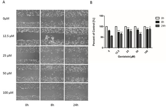 2.6. Genistein’s Inhibition of Cell Migration in the Wound−Healing Assay
