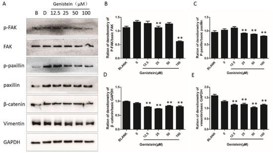 2.9. Genistein Inhibits Activation of the FAK–Paxillin Pathway