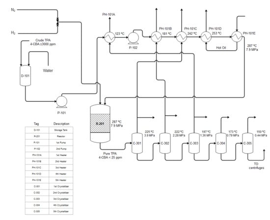 Flow sheet of an industrial hydropurification plant for TPA. Adapted from [68].