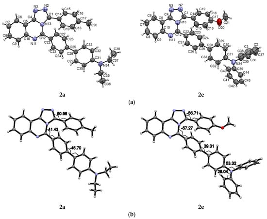 (a) Molecular structure of 2a and 2e in the thermal ellipsoids of 50% probability. (b) Selected torsion angles of compounds 2a and 2e.
