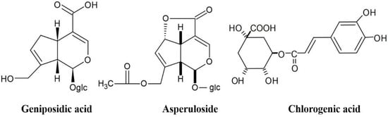 - Gao, Y.; Chen, Z.; Liang, X.; Xie, C.; Chen, Y. Anti-atherosclerotic effect of geniposidic acid in arabbit model and related cellular mechanism. Pharm. Biol. 2015, 53, 280–285. [Google Scholar] [CrossRef]