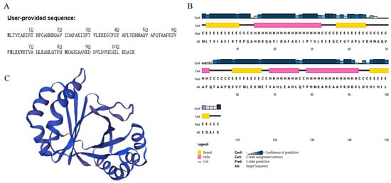 Bioinformatics analysis of BuMO. (A)—The primary structure. (B)—The secondary structure. (C)—The tertiary structure.