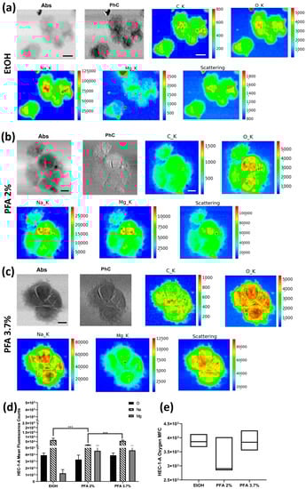 - Gianoncelli, A.; Vaccari, L.; Kourousias, G.; Cassese, D.; Bedolla, D.E.; Kenig, S.; Storici, P.; Lazzarino, M.; Kiskinova, M. Soft X-ray Microscopy Radiation Damage On Fixed Cells Investigated With Synchrotron Radiation FTIR Microscopy. Sci. Rep. 2015, 5, 10250. [Google Scholar] [CrossRef]