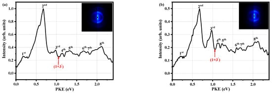 Each red arrow in Figure 4 represents the maximum PKE of the (1 + 3’) ionization process, which is calculated from: