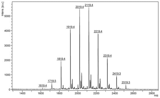 MALDI MS spectrum of succinic-anhydride-modified γ-cyclodextrin (reprinted with permission from []).