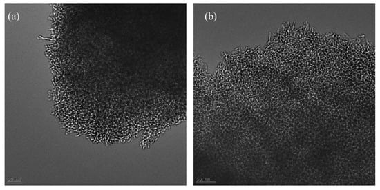 Brunauer–Emmett–Teller (BET) surface areas (SBET) were calculated from N2 adsorption isotherms in the relative pressure range of 0.05–0.2. Pore size distributions (PSDs) were obtained from the adsorption branch of isotherms using the improved Kruk–Jaroniec–Sayari (KJS) method [46]. Pore widths (WKJS) were determined from the PSD curves at their apex points. The single-point pore volumes were obtained from the maximum amount adsorbed at a relative pressure of about 0.98.